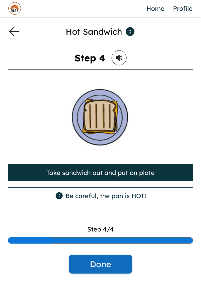 Helping young adults with special needs cook independently through step-by-step, visual guidance.