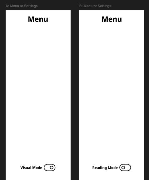 I also explored mode toggles to offer more customization and better adhere to varying literacy levels. However, this added complexity across multiple user roles and expanded the scope beyond what we could realistically support. This feature wasn’t a no, just a not right now since our priority was getting the app to development and into users’ hands.