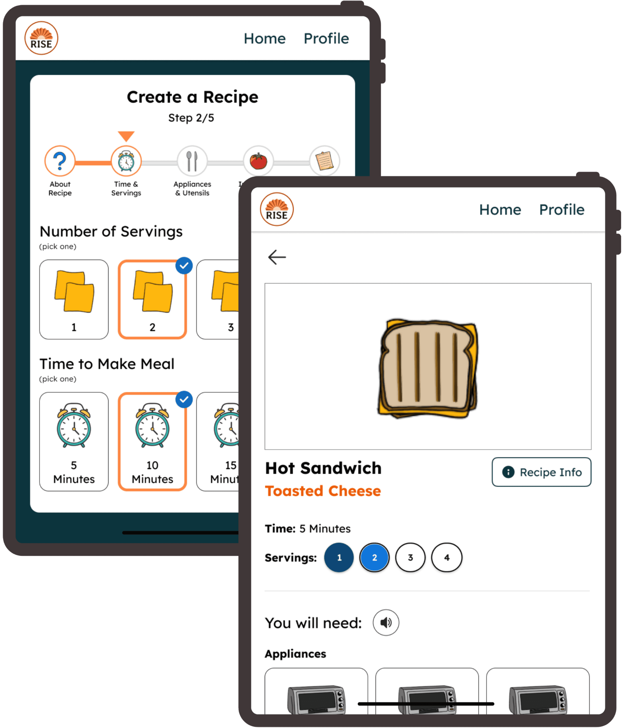 The goal of the project was to digitize Rise DC’s existing adaptive physical cookbook and create a more accessible, scalable way for participants to learn important life skills, such as cooking.