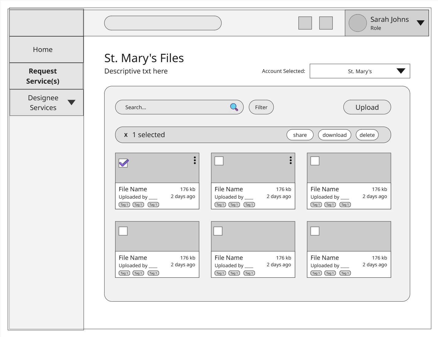 Older designee accounts can contain large volumes of documents, highlighting the importance of clear organization and filtering options.