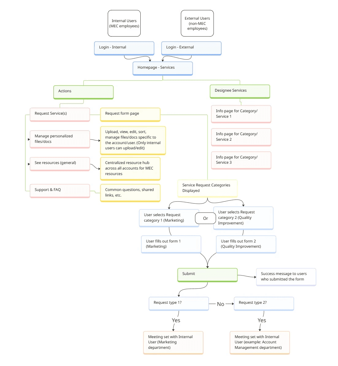 This chart illustrates how users would interact with the new CRM portal (click image to zoom in)