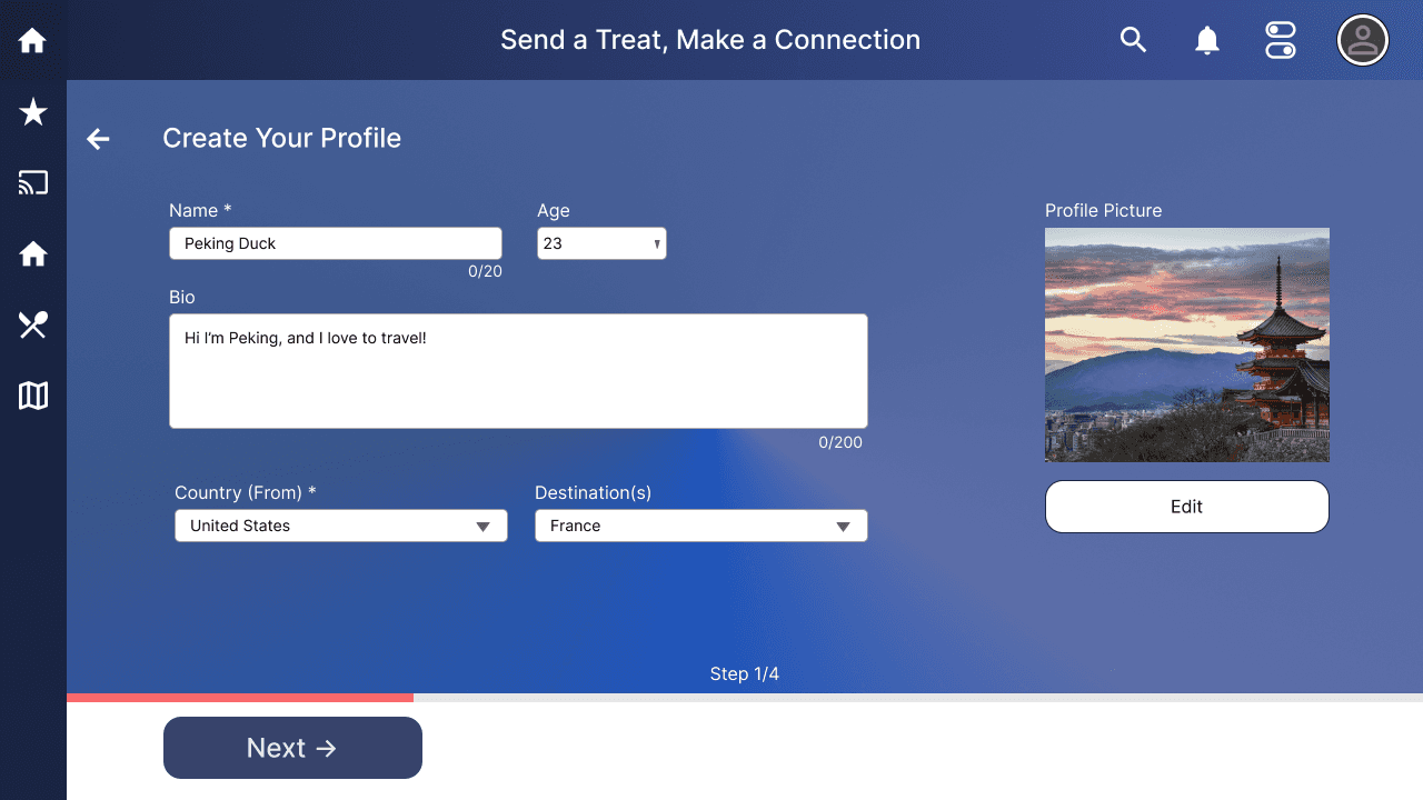Adding a visible progress bar when users are going through steps like creating a profile or sending a treat could help mitigate this.