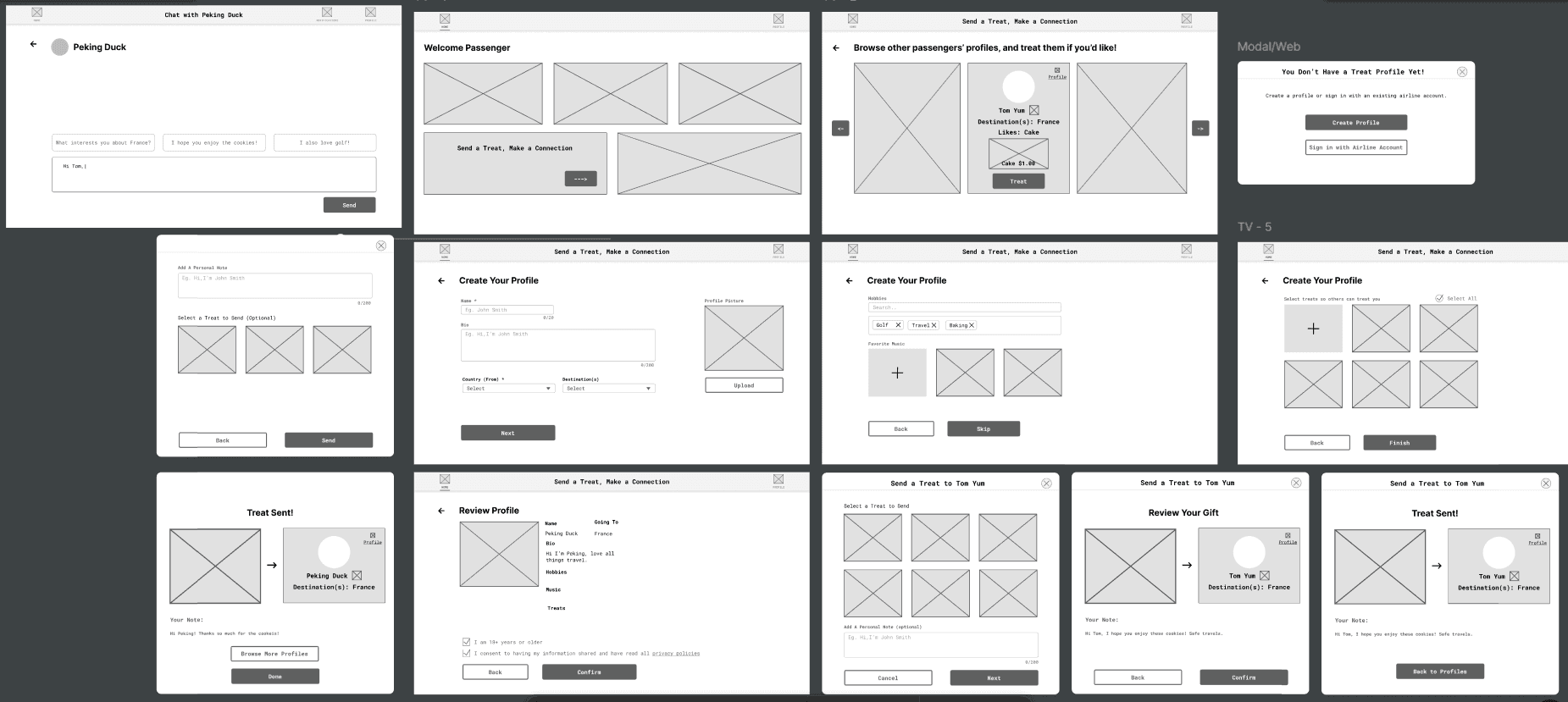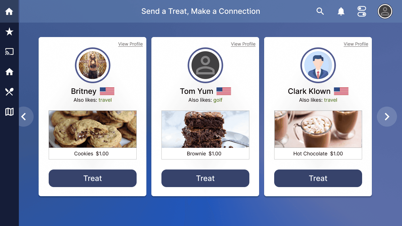 Treat Someone is an in-flight social experience designed to help passengers discover shared interests and connect with others by sending airplane treats, like a brownie or coffee. For this project, I wanted to experiment with rapid ideation and iteration to develop a potential app idea.