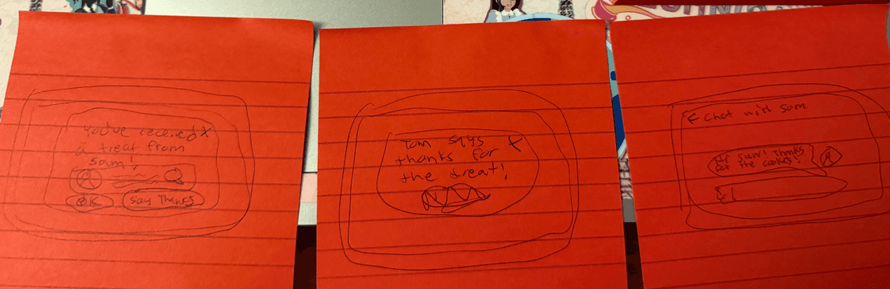 Users can set preferences, send treats with optional notes, and recipients can reply or start a conversation utilizing personalized AI conversation starters, encouraging low-pressure and non-disruptve social connection.